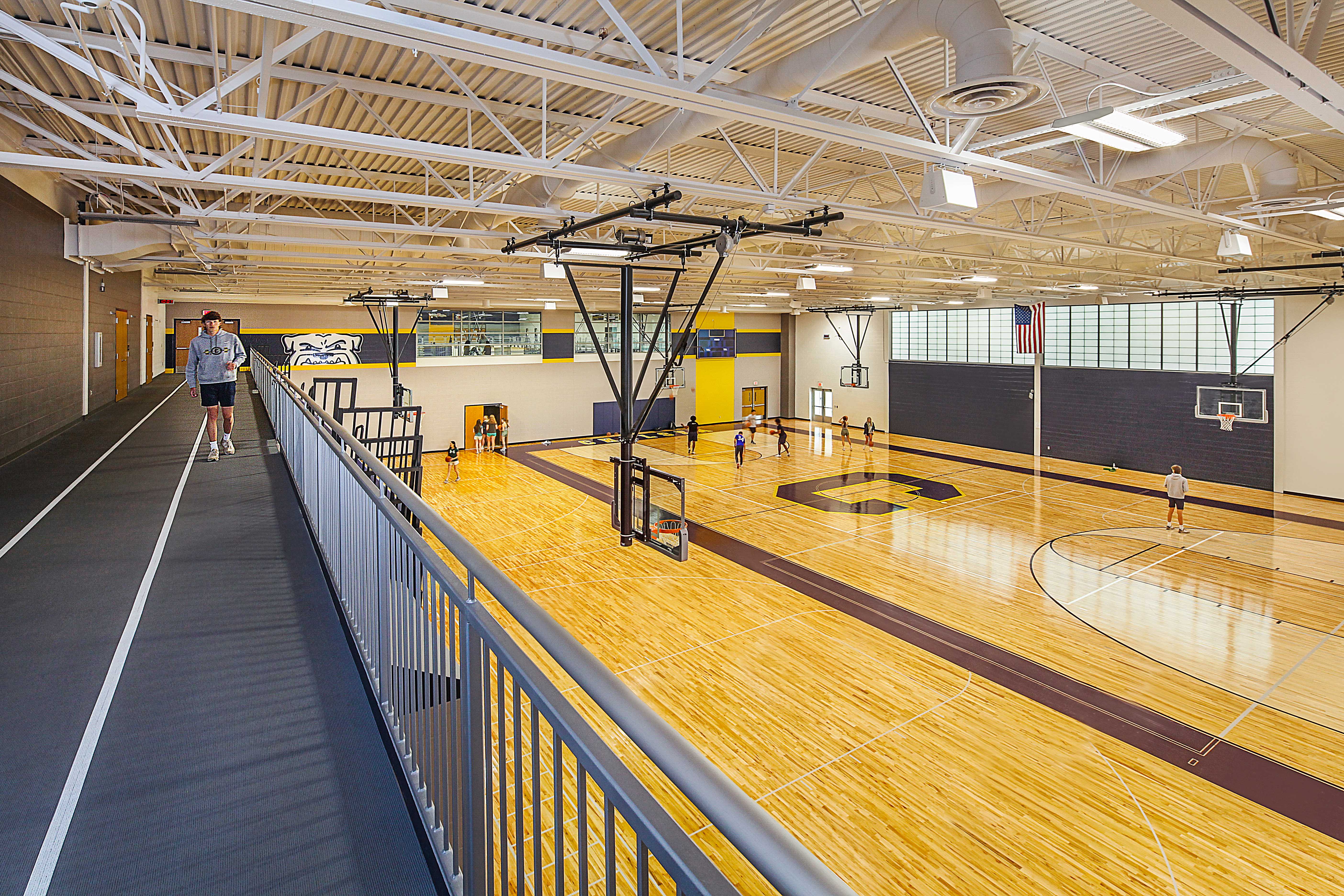 - Upper level track extended to maintain bleacher access from above as in the existing main gym