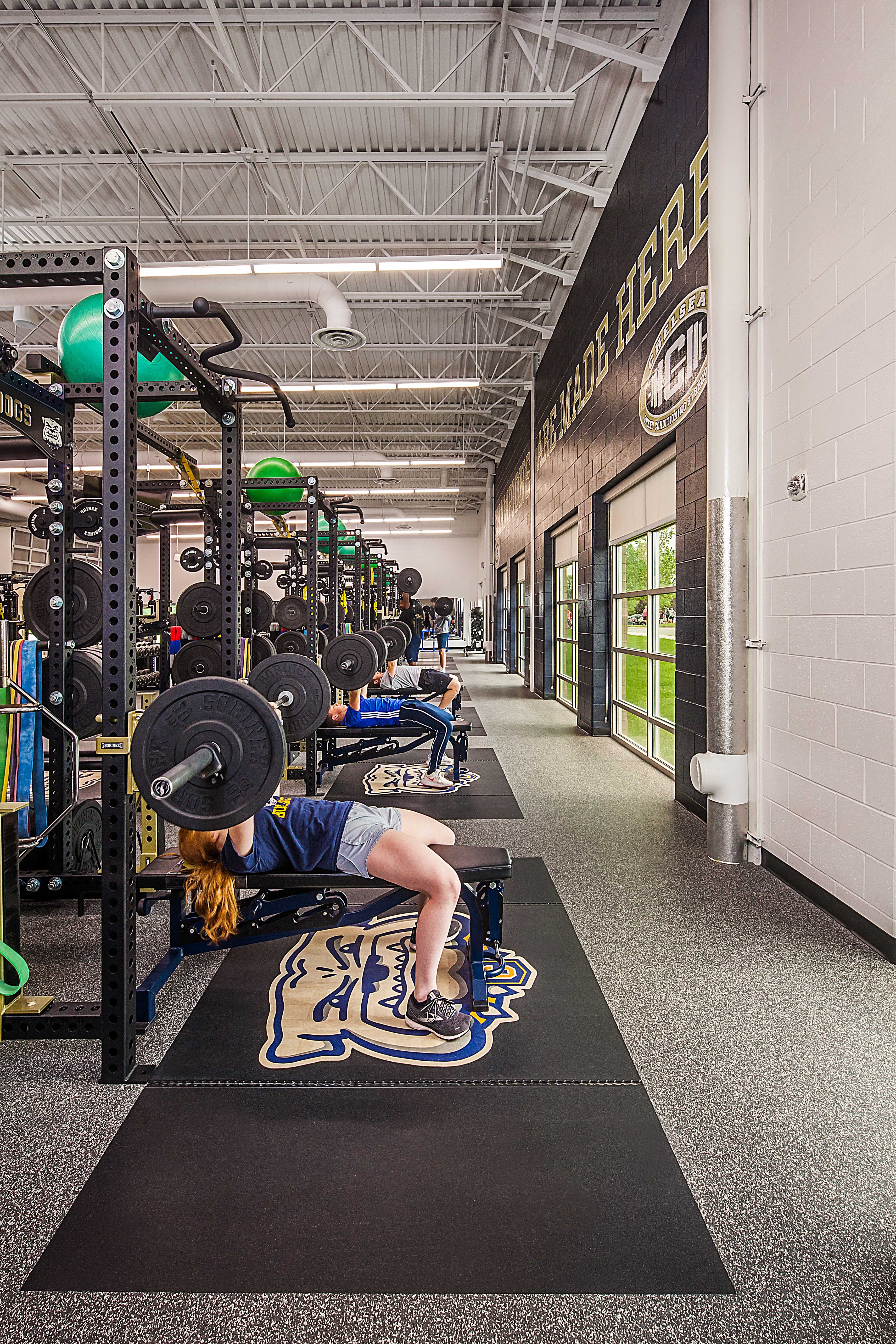 - Weight room designed to withstand point loads of heavy dropped weights, as well as a staff/team collaboration room for easy supervision and connectivity