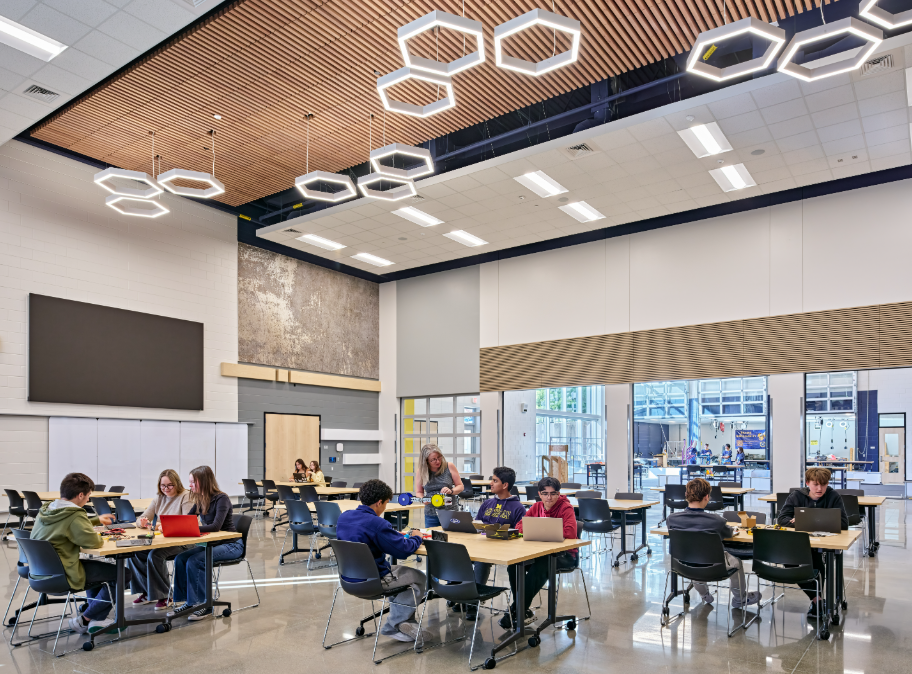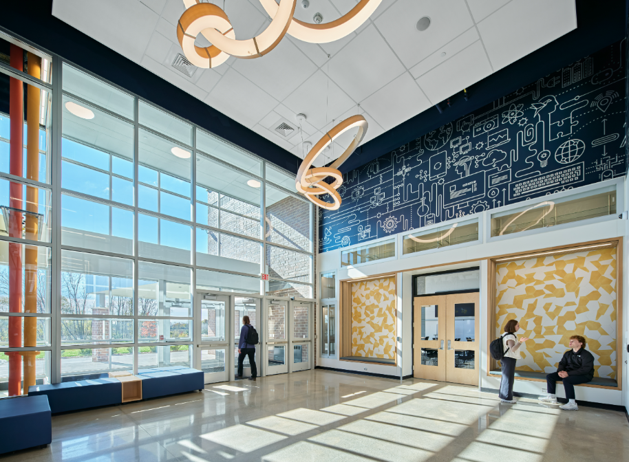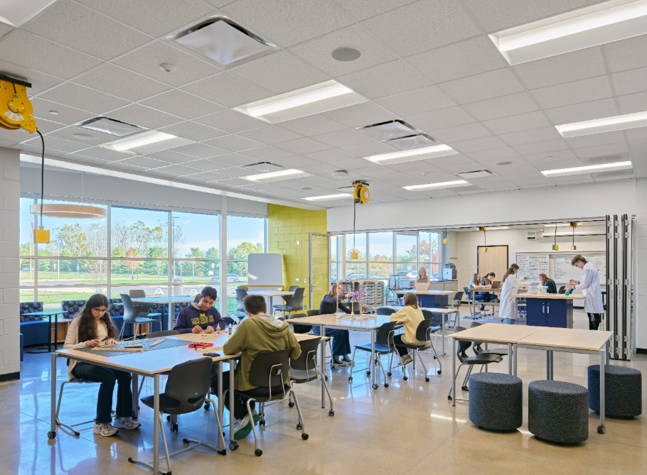 The STEAM Center was designed to highlight the achievements of Saline’s award-winning Robotics and Science Olympiad teams while providing flexible spaces for project-based learning, collaboration, and community events. The design process was highly collaborative, involving administrators, teachers, students, and community members. Their feedback helped shape a space that supports hands-on exploration and innovation across all disciplines.